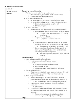 Okay, it may look like there is alot here. And there is but certainly not in a bad way. These notes are spaced out, easy to digest. Perfect for a highly caffeinated brain (at certain [or all] times in semester). The IMM2011 notes have been broken into 4 parts, for you to get only what you need. Anyway, now that's out of the way. All the thinking, sorting, analysing, processing and lecture attending has been done for you. These notes got me a good HD score that kept me interested in IMM enough to complete a further 3 units - with a HD average These notes are separated into objectives that a lecture was designed to teach. The subsequent dot points of relevant information are below. I have used lecture notes, lecturer's elaborations prescribed text books and additional readings to compile these notes. These notes would also make a great foundation for further IMM units for a review, or for the IMM crash course given in BMS units. CONTENTS: - Antigen Receptors - B cell Development and Tolerance - B cell/Humoral Immunity - Humoral Immunity Effector Mechanisms -