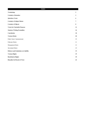 These comprehensive LAW4170 Trusts notes were formulated for use in the Trusts exam and include short summaries of most prescribed cases. I received a HD for the subject. Topics covered: Certainty of Intention Quistclose Trusts Certainty of Subject Matter Certainty of Objects Trusts for Charitable Purposes Statutory Writing Formalities Constitution Trustees Duties Defences and Limitations on Liability Trustees Rights Beneficiaries Rights Remedies for Breach of Trust