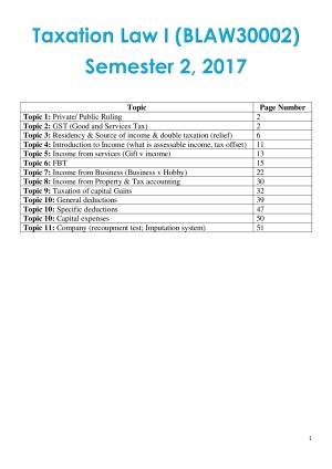 H1 Taxation Law I notes - summarised compactly with only the relevant details that you will need to smash that H1 in the exam!