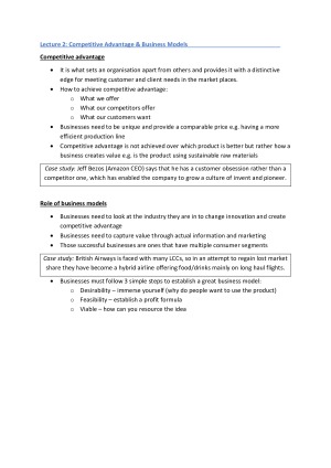 2019 Integrated Business Perspective (IBP) HD Notes Topics covered in Notes: Competitive Advantage & Business Models Design Thinking Innovating to Fulfil Consumer Jobs & Pitching an Idea Resources, Activities & Partnerships Prototyping Creating Value Access Customers, Channels & Marketing Strategy across the Business Life Cycle Accounting in the BMC Sustainability & Ethical Imperative Legal & Regulatory Considerations Includes summary of each prescribed readings. Includes: * Notes from Lecture * Notes from Tutorial * Case Studies Notes are great for the group assignment, tutorial questions and final exam. Scored a HD!
