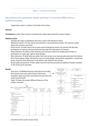 Comprehensive research methods C notes as per the study guide. Weekly Content: W1 Levels of Evidence W2 Systematic Reviews W3 Systematic Review Search Strategies W4 Study Selection W5 PRISMA, Bias, Systematic Review Content W6 Introduction to Meta-Analysis W7 Effect sizes, Confidence Intervals and P-Values in Meta-Analysis W8 Random Fixed Effects W9 Publications Bias in Meta-Analysis W10 Ethics