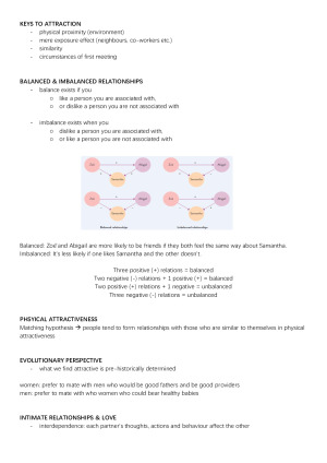 Reduced and nicely structured notes taken from lecture & readings covered by weeks. There is a definition list of key terms used in the readings and lectures, diagrams and worked examples (from when statistics was covered).. It may seem like a lot of pages, but the definitions lists take up a bit of space Week 1 - social psychology 1 Week 2 - social psychology 2 Week 3 - scientific method Week 4 - research, ethics, variables, measurement Week 5 - memory 1 Week 6 - memory 2 Week 7 - sampling procedures, descriptive & correlational research Week 8 - experimental and quasi experimental methods Week 9 - abnormal psychology 1 Week 10 - abnormal psychology 2 Week 11 - summarising data using descriptive statistics Week 12 - using inferential statistics