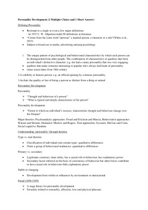 Summary of all topics (includes readings and lectures and tutorials): -Cognition -Problem solving, reasoning and Executive Functions -Language -Assessment of Development -Theory of Mind -Moral Development -Physical Development -Motor Development -Emotional Development -Personality Development -Gender Development -Self-concept and Self-worth -Sibling Relationships -Peer Relationships and Friendships -Prosocial and Antisocial Behaviour -Social Skills -Emotional Health I -Emotional Wellbeing II- Wellbeing and Development Put in my blood, sweat and tears into writing these notes.