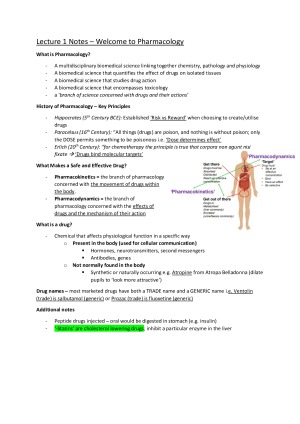 A comprehensive, easily-accessible set of study notes covering all of the lectures from the subject. Topics covered include: - Key Factors in Generating Safe and Effective Medicines - Drug Discovery, Regulation and Development - Therapeutic Uses of Drugs - Toxicology - Therapeutics and Other Uses of Drugs