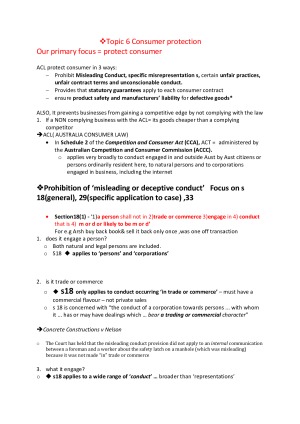 Topics covered: - consumer protection - law of torts - professional negligence - business relationships and the law - corporations Also all rules and detailed summaries of all case used in the lecture slides.