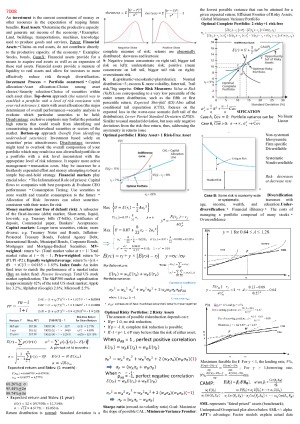 -cover all formulas and definitions and well-structured -I got 86 for this course -include all topics and the Investment Process 2. Risk, Return and Historical Data , Risky Assets & Building Portfolios Capital Asset Pricing Model Pricing and Multifactor Models (1) Pricing and Multifactor Models (2) Markets Finance Evaluation Pricing, Yields and the Term Structure of Interest Rates Bond Portfolios Funds; Review