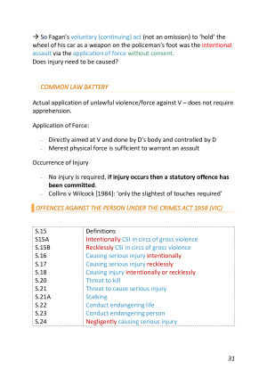 Introduction Common Features of Torts Purposes of Tort Law Accident Compensation Schemes Trespass to the Person Trespass to the Person- Common Elements - Battery - Assault - False Imprisonment Trespass to the Person Defences Trespass to Land Trespass to land Defences Private Nuisance Private Nuisance Defences Trespass to land & Private Nuisance Remedies Negligence - DOC - Breach of Duty - Causation - Remoteness - Negligence Defences - Vicarious Liability - Negligence Damages