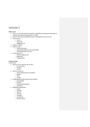 Summary of lecture notes. 1. The Australian Legal System 2. Introduction to Law of Contract and Formation of a Contract 3. Consent of Parties, Legality of Object 4. Contents and Interpretation of the Contract, Operation of the Contract 5. Termination and Remedies 6. Consumer Protection 7. Business Relationships 8. Corporations Law 9. Law of Torts