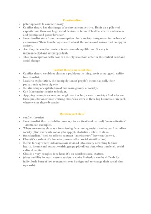 differences are between how a conflict theorist and functionalist theorist would understand class inequality in Australian society - FUNCTIONALISM - CONFLICT THEORISTS -SOCIAL CLASS