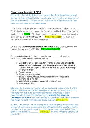 These notes are scaffold exam answers with detailed explanations of the cases. They cover all of the examinable topics and resulted in a Distinction result. Not only are they great for the exam, but they will assist you in understanding the structure of the subject, assignments and contents for in class participation. Topics -Bailment -Private International Law -International Sales of Goods -Personal property securities under the Personal Property Securities Act