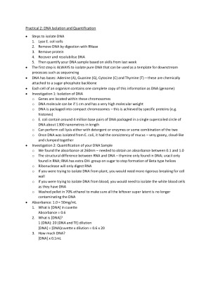 DISTINCTION PRACTICAL NOTES BIOL1007 From Molecules to Ecosystems COMPLETE PRACTICAL NOTES