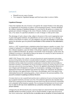 Includes: - lecture notes - tutorial discussions/questions - readings Very easy to read and follow. Topics include: 1. Personal Injury 2. Defamation 3. Contracts & Damages 4. Liquidated Damages 5. Injunction 6. Restitution 7. Alternative Dispute Resolution 8. Private & Public Law 9. Restorative Justice 10. Recap of Unit