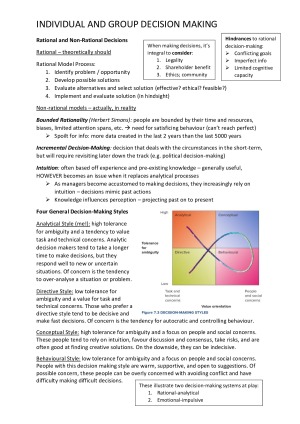 Notes integrate material from lectures, the prescribed textbook, tutorials, and examinable case studies. Covers new trimester syllabus topics: - The Exceptional Manager - Motivation - Groups and Teams - Individual Differences and Behaviour - Decision Making - Power and Leadership - Organisational Design - Human Resource Management - Strategy