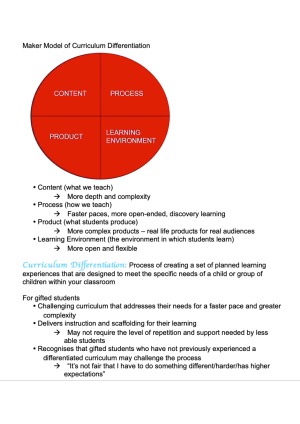 Lecture Notes - lectures 1-11 Topics covered: - Concepts of giftedness - Characteristics of Gifted Students - Identifying Gifted Students - Curriculum Differentiation 1 & 2 - Special Population Groups 1 & 2 - Socio-affective development - Creativity - Programs and Provisions 1 & 2