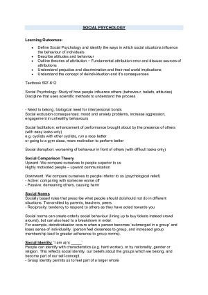 Comprehensive PSY1022 notes covering ALL the topics from the lectures and also the prescribed textbook readings. Pretty much all the info you will need to learn for the quizzes and assessments for within semester. Also includes a few quiz questions from the textbook to help test your learning of the content! Topics include: - Psychological discovery (ALL the research and statistics theory, located at the end of the document as its own section) - Social psychology - Cognitive psychology - Abnormal psychology These notes are definitely a great supplementary guide in addition to lectures which will definitely improve your understanding of PSY1022!