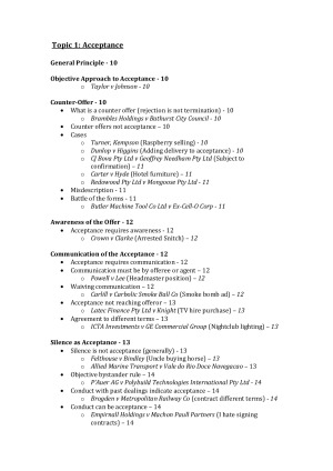 Subject notes for ANU LAWS1204