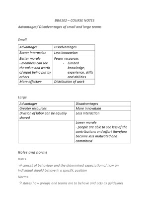 Notes that cover all necessary information from the lectures, textbook and tutorials. Easy to read, understand and memorise. All you need to do is buy, read and pass your exam with ease. Topics include: - The exceptional manager - The external environment - Culture - Ethics, Sustainability and Corporate, social responsibility - Planning - Foundation of Management - Organisational structure and design - Managing human resources, change and innovation - Understanding Groups and Managing work teams