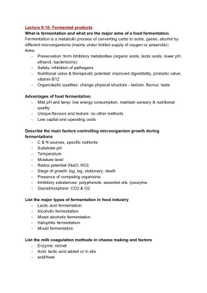 FOOD3007 Review Question Summary Exam Prep - Food Processing and Preservation