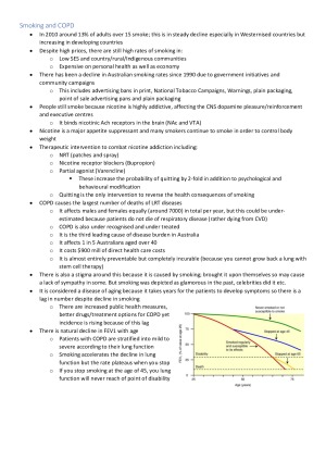 These comprehensive notes encompass all the lectures and additional notes required for the following main topics - Metabolic syndrome - Smoking and COPD (and asthma) - Pain and pain management