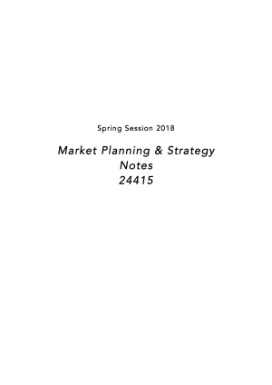 These Scaffold Notes cover the substantive course material from MPS. These topics include: - What is Market Planning Introduction Week - External and Internal Environmental Analysis - External and Internal Environmental Analysis - Continued - Customers, Segmentation and Targeting - Branding and Positioning - Customer Relationships - Supply Chain Partner Relationships - Culture and Employees It also includes Takeaways from tutorials I attended as well as our Tutorial participation question on Warby Parker. These notes are based around scaffold questions that will serve you well in the exam. These scaffolds with detailed examples will assist you in getting into the substance, and potentially how you may frame a response. All examples (provided by lectures & outsourced) are in red font for your attention.