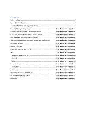 Covers topics, lectures, and readings from week 1 to week 12. Covers Judicial review, merits review and remedies as well.