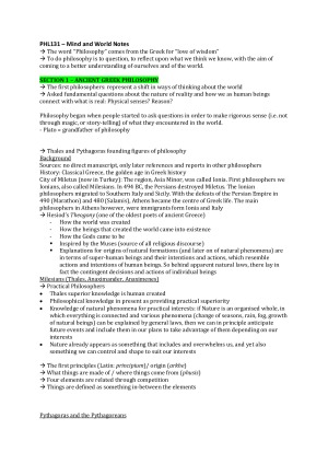 Covers all lecture topics - the first philosophers - Plato - Aristotle - Descartes - Traditional and Contemporary accounts of philosophy - Free Will - Consciousness - Embodied and Extended Cognition