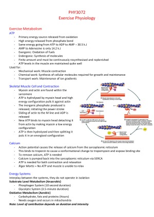 PHY3072 Exercise Physiology Lecture/Exam HD Notes