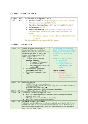 - Share Issue - Setting Up Company - Disclosure - Proprietary Company vs Public Company - Members Meeting - Members Decision - Board Meetings - Public Company - Proprietary Company - Decision Making in Companies & RR - Directors - Irregularities - Members' Rights & Remedies - Breaches, Contravention & Rights to Sue - Directors & Officers Duties - Duty of Care & Diligence - Insolvent Trading & Dividends - In Good Faith, Best Interest & Proper Purpose - Corporate Group - Duty to Avoid Conflict of Interest - Accessory Liability - Related Party Transaction - Capital Maintenance - Variation of Class Rights - Gambotto - The Equitable Limitation - Transacting by Companies