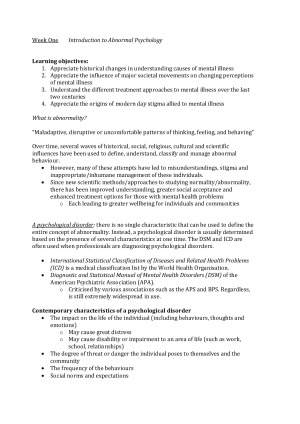 Includes detailed notes from both weekly lectures and readings. Easy and simple to read, with headings and subheadings used. Includes topics from weeks 1-12 1: Introduction to Abnormal Psychology 2: Sexual dysfunction and disorders 3: Disorders of Childhood 4: Disorders of late life 5: Sleep disorders 6: Eating disorders and body dysmorphia 7: Mood disorders 8: Personality and Personality disorders 9: Anxiety disorders 10: Obsessive-compulsive and related disorders 11: Schizophrenia 12: Substance-related disorders