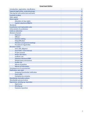 Final exam notes containing all relevant case law and legislation. These notes compile lecture content, tutorial content and textbook readings into a concise format that is easy to apply for exam purposes. Headings include: - Introduction, formation, and classification - Separate legal entity, corporate groups - Piercing the veil - Debt and share capital, dividends - Constitution and replaceable rules - Division of powers - General meeting and board of directors - Directors' duties - Consequences of contravention - Ratification and relief - Shareholder remedies - Oppression, winding up, injunction Note: Corporate Contracting and Corporate Mortality were not assessed in Semester 1 2019. Do note that these are student notes and are not meant to replace what is taught in the course. When in doubt, follow the direction and advice of lecturers and tutors.