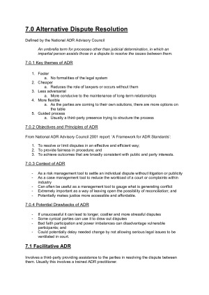 These notes follow the UTS curriculum strictly, and cover all content from the semester. Using these notes, I achieved a mark of 36/40 in the final exam. For the exam, I would also recommend pre-writing a lightning talk for every possible topic. The topics covered are as follows: 1. Focus and Structure 2. Adversarial v Inquisitorial Law 3. Sources of Procedural Law in NSW 4. Open Justice 5. Access to Justice 6. Pre-Litigation steps and Client Care 7. Alternative Dispute Resolution 8. Jurisdiction 9. Limitation Periods 10. Proceedings commenced by the 'originating process' 11. Pleadings 12. Joining 13. Service 14. Evidence in Proceedings 15. Interlocutory Applications 16. Costs 17. Strike-Outs 18. Summary Disposal 19. Vexatious Litigants 20. Judgment Enforcement 21. Appeals