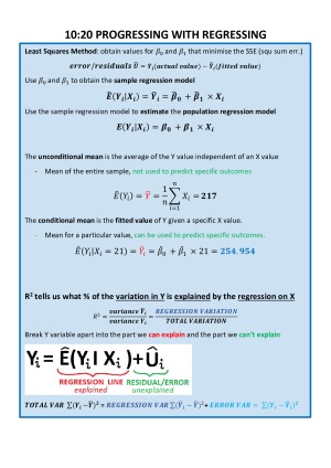 Professional quality notes from a H1 (89) student that will serve as an excellent study AND revision tool. Includes detailed information on ALL WEEKS of LECTURE CONTENT: 1. Introduction 2. Percentiles, Variability and Correlation 3. Probability 4. Probability calculations and Drug Testing 5. Evaluating Games 6. Bivariate Probability Distributions 7. Conditional Expectations 8. Continuous Random Variables and the Normal Distribution 9. The t and Pareto Distribution 10. Introduction to Statistical Inference 11. Sampling Distributions 12. Unbiasedness and Central Limit Theorem 13. Hypothesis Testing 14. Hypothesis Testing for a Mean 15. Hypothesis Testing Errors 16. Confidence Intervals 17. Matched Pair Sampling 18. Independent Samples 19. From Means to Linear Regression 20. Progressing with Regressing 21. Statistical Inference for Regression Coefficients 22. Statistical Inference for the Conditional Mean and Data Issues (23/24 revision) These notes are suitable for: ✅ Students who are having trouble UNDERSTANDING the content and want both written and visual representations. ✅ Those who are looking to have a compact REFERENCE to assist during the semester. The coloured lecture summary boxes will assist you with regular revision and the clear structure and titles used in my notes will help you to locate information and formulas quickly. ✅ Students who don’t want to or don’t have the time to read the textbook, attend lectures, do the pre-tutorial and module questions, attend tutorials and CONSOLIDATE all of this knowledge into their own notes weekly. Alternatively, students that have fallen behind and can’t catch up on the volume of content will benefit from my notes. ✅ Students who are preparing to do the MID-SEMESTER TESTS or END-OF-SEMESTER EXAM and need detailed notes that are clearly structured to refer to for making their own summary notes or who need a consolidation of all material to ensure they have no gaps in their knowledge. These notes contain: ✅ ALL CONTENT FROM THE LECTURES: Information from the lecture slides as well as additional oral explanations and hints. While the lecture slides are brief and contain diagrams and figures without explanatory text, my notes also contain the oral, textbook and personal explanations all in one place so each concept can be fully understood in context. ✅ SUMMARIES OF EACH LECTURE: The coloured boxes at the start of each chapter contain the key points of each topic for quick and easy revision or reference when doing questions. ✅ TEXTBOOK FORMULAS: Useful shortcuts and formulas from the textbook are integrated into the relevant sections in my notes to provide additional background understanding to what is covered in the lectures. ✅COLOURED DIAGRAMS AND ANNOTATIONS: My notes contain a copious number of diagrams, both modified ones from the lectures and self-made ones, which should complement the written explanations for some concepts, provide visual aid to show relationships between concepts and help with recollection. These notes contain both the DETAILS to help you first understand the material and the SUMMARIES to help you revise come test or exam time. They should serve as an effective CONSOLIDATION OF ALL CONTENT to save you time and effort. I hope they will be of just as much help to you as they were to me – Best of luck!