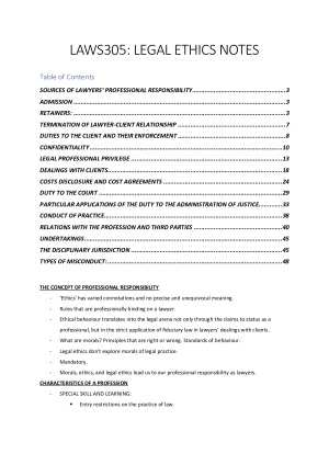 *RECIEVED DISTINCTION*. Notes, case law, everything you need! Full & complete notes on following topics: - Source of Lawyer's professional responsibility. - Admission - Retainers - Termination of L-C Relationship - Duties to C & enforcement, duties to Court - Confidentiality & LPP - Costs disclosure & agreements. - Relations with the profession & third parties - AND MORE