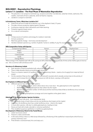 This is a full comprehensive document containing notes for weeks 7-9 of reproductive physiology. It is a great subject, yet content heavy so having detailed notes is essential! These notes are great to follow and even contain the little details brought up by lecturers! This set of notes includes the following lectures: - Lactation - Breasts and Breastfeeding - Germ Cells - Sex Determination and Sexual Differentiation - Developmental Origins of Health and Disease - Endocrine Disruptors and Reproduction - Epigenetics in Human Health and Disease - Stem Cells I have uploaded the earlier and later weeks as well should you find this style of notes to be helpful. Please feel free to refer to my other listings :)