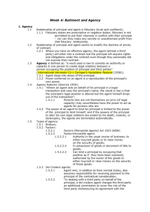 Week 4-12 includes lectures, tutorials and textbook analysis. Extremely detailed - will not require any additional materials to do well in this course. Topics include: - Bailment and agency - Sales of goods; transfer of title - Sale of goods cont'd; reservation of title; transfer by non-owner - Express and implied terms - International perspective - Security interests over personal property - Bills of exchange; guarantees; introduction to banking law - Insurance - Bankruptcy