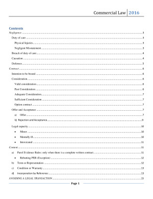 These notes are great for the final exam as it is open book. It covers all the topics in the final including negligence, contract, legal capacity, remedies, statutory law, defective goods and various other need to know sections such as warranties, conditions etc.