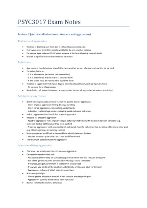 These are comprehensive but easy-to-read notes which cover every lecture of PSYC3017. They include points from lecture slides and clarification/interpretation, making the points easier to understand using simple language. These notes were made for the purpose of exam revision and helped me to get a distinction for this subject.