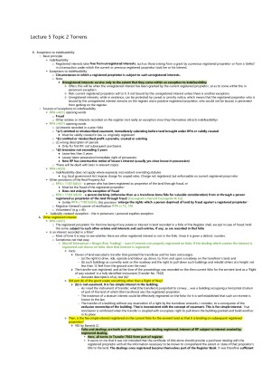 Topic 1 Introduction and Fundamentals of Land Ownership Topic 2 Torrens Topic 3 Co-ownership Topic 4 Easement and Profit a prendre Topic 5 Covenants Over Freehold Land Topic 6 Leases These Real Property notes combines material from lectures and readings. The structure and logic is very clear for each topic thus easy to follow. A detailed account of principles is contained in these notes, as well as key cases and statutes. Cases summaries include facts, decision and principles. For important cases, I have also included a one-sentence summary which is very useful in exams.