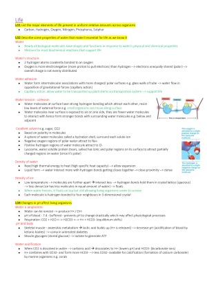 - all topics are covered (from week 1-10) -life, cells, macromolecules, cell integrity, nutrient and ion transport, metabolism, photosynthesis, DNA replication, cell division and reproduction, protein synthesis, mutations, mechanism of inheritance, population genetics - easy to understand with diagrams - clear, typed notes with colour coding