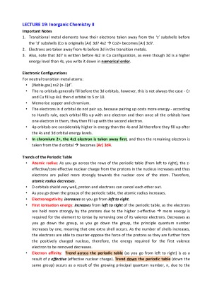 While highly comprehensive, these notes have been carefully written to include only the content directly examined in the CHM1022 end-of-semester exam. The notes go over ALL the lecture topics, including: 1) Introduction to Organic Chemistry 2) Stereochemistry 3) Chiral Centres, R & S System 4) Chemical Reactivity 5) Mass Spectrometry and Infrared Spectroscopy (IR) 6) Nuclear Magnetic Resonance (NMR) 7) Amino Acid Chemistry 8) Polypeptides and Proteins 9) Carbohydrate Chemistry 10) Nucleic Acids Chemistry 11) Synthetic Polymers 12) Polymers and Green Chemistry 13) Inorganic Chemistry 14) Coordination Compounds and Complexes 15) Ligands and Complexes 16) Bridging Ligands, Ligand Behaviour and Equilibria 17) Isomerism of Complexes 18) Orbitals and Crystal Field Theory 19) Colour and Magnetism 20) Biological Inorganic Chemistry Diagrams and figures are included to simplify and reinforce the key content. Also included are some worked examples and workshop questions and answers. Look out for sub-headings titled 'important notes', which simplify much of the complex content likely to be examined. While this unit is very content-heavy, these notes will hopefully help to minimise any confusion and consolidate your knowledge. Each lecture topic is indicated through a title in large blue bold font, with sub-headings in smaller bold black font. These notes allowed me to achieve a HD and using them, you can too :)