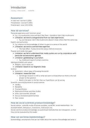 Comprehensive notes from the CAS lectures. Complete with clear headings and dot-points, helped me achieve a H1 for the subject. Topics included: - Introduction - Qualitative research design - Interviews - Focus groups - Ethnography - Content analysis - Discourse analysis - Digital methods - Mixed methods - Conclusion