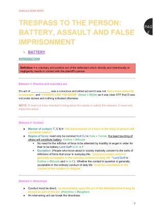 These notes cover all topics that might be assessed in the exams (trespass to persons and to land, negligence, defences and damages). The content has been re-organised in the form of exam script, including easy fill-in-the-gap templates for most of the torts. Other features: - Colour-coded (quotes from judges, cases, legislation, definitions, principles, sub-headings for exam response) - Step-by-step analysis - Exam response structure (introduction, definition, conclusion)