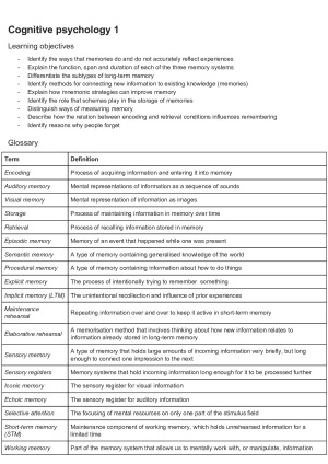 These notes are a combination of the lecture notes and the reading from the custom PSY1011/PSY1022 textbook. Topics include: 1. Cognitive psychology (2 lectures) 2. Social psychology (2 lectures) 3. Abnormal psychology (2 lectures) 4. Psychological discovery (6 lectures)