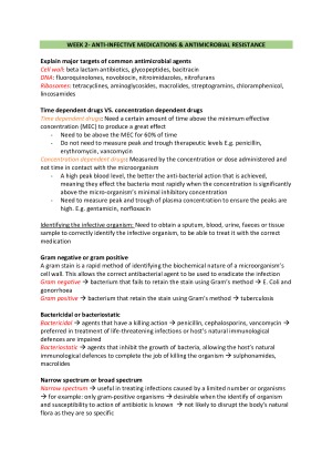 Notes are complied week 1-6 from videos, weekly readings and further reading. Topics covered are: - Introduction to QUM and medicines to treat pain - Anti-infective medications & antimicrobial resistance - Cardiac: conduction and contractility - Cardiac: blood vessels, fluid volume and coagulation - Medications affecting respiratory function - Medications affecting GIT function and diabetic agents