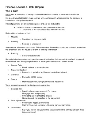 Complete and concise summary of all lectures and the textbook for Fundamentals of Business Finance.