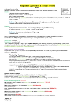 40 pages of notes; including all 6 weeks of content (week 7 is only revision). This includes my seminar notes from each class and intended learning outcomes answered in simple as revision for the exam. I've also listed some patient priority problems and questions for each week to test knowledge. Week 1: Respiratory dysfunction & thoracic trauma Week 2: Systemic inflammation, sepsis & shock Week 3: Acute on chronic kidney disease Week 4: Neurological injury & seizures Week 5: Intro to cancer Week 6: Clinical deterioration & patient complexity