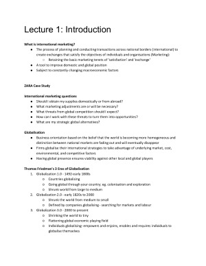 Includes all lecture notes and case studies, as well as relevant parts of the textbook. Topics include: Introduction to International Marketing, the economic environment, trade institutions and policy, political and legal environment, the cultural environment, building the knowledge base, foreign market entry, global distribution and logistics, product policy, adaption and brand management, services marketing, pricing in international markets, international marketing communications and social networks and communications.