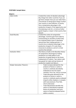 ECOP1003 Notes: - Who gains from trade? - Economic nationalism and state strategies - Structural asymmetries and poorer country perspectives - Re-organising work and production - Corporate globalisation - Foreign Direct Investment and its discontents - Capital, Labour and the State transformed? - Organising the world's money - Debt and financial discipline - Financialisation this time - Financial crises - Prospects for the international economy and finance