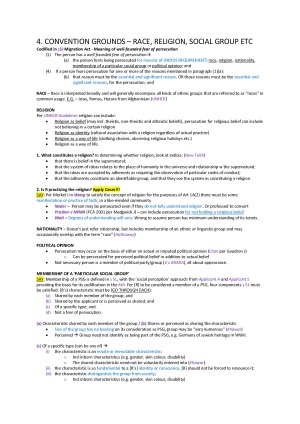 Top notes for International Refugee Law and Practice. Received score of 83 (HD). Includes lecture notes (with instructions and process) and script notes. Topics covered - OVERVIEW, HISTORY AND KEY CONCEPTS IN INTERNATIONAL REFUGEE LAW - THE REFUGEE DEFINITION – ARTICLE 1A(2)(3) - COMPLEMENTARY PROTECTION - LIMITATIONS ON PROTECTION RELOCATION (IFA); EXCLUSION (ARTICLE 1F) - CESSATION OF REFUGEE STATUS – ARTICLE 1C - REGIONAL REFUGEE SYSTEMS – EUROPE AND AUSTRALIA - ACCESS TO ASYLUM AND THE PRINCIPLE OF NONREFOULEMENT - REFUGEE STATUS DECISION-MAKING - REFORMING INTERNATIONAL REFUGEE LAW, SOLUTIONS AND THE WAY FORWARD