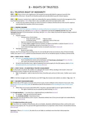 82 (HD) Trusts Law Notes. Notes include process and script. Topics include: - Introduction and Classification of Trusts - Creation of Express Trusts - Trust Structures - Statutory Writing Formalities - Duties and powers of trustees - Defences and limitations on liability - Rights of trustees - Rights of beneficiaries - Remedies for breach of trust